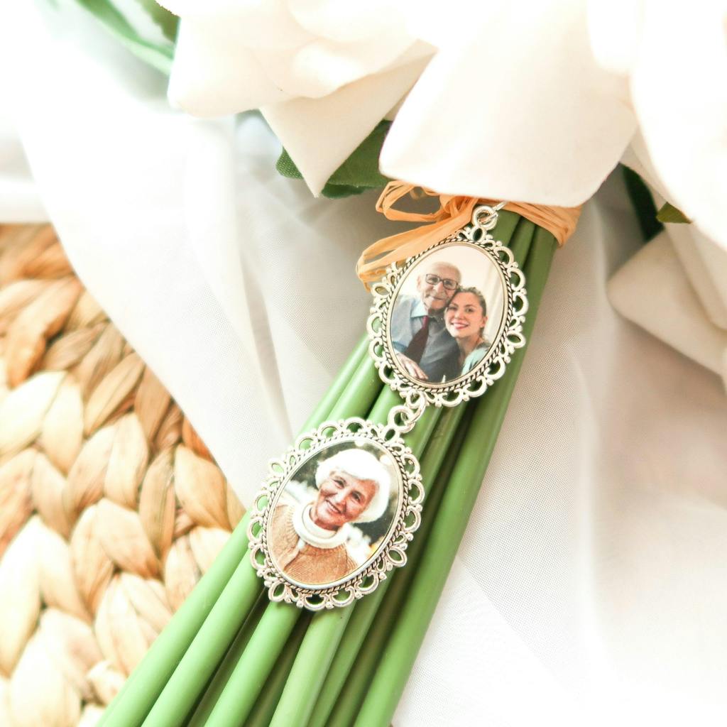 Our beautiful bridal memory charms are a perfect way to remember loved ones who cannot be there on your special day. With a photo of your choice UV printed and placed inside a stunning pendant; your charm will arrive with ivory satin ribbon ready to tie around your floral wedding bouquet.
